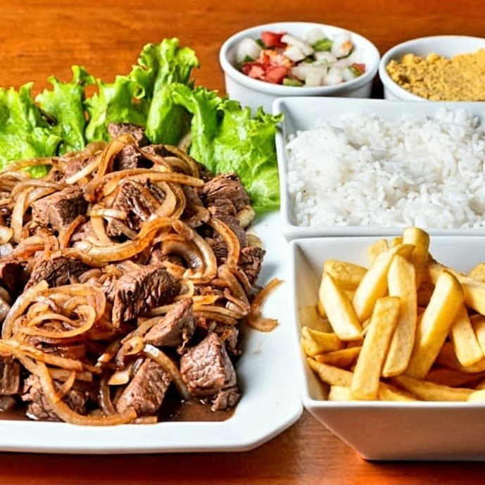 Executivo: Alcatra Acebolada, Com Arroz Branco, Farofa De Ovos E Fritas
