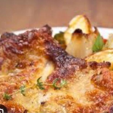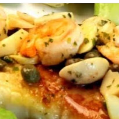 Filé De Peixe Empanado Ao Molho Belle Meuniere:acom Arroz De Brócolis E Batata Rústica Molho Camarão,champignon,alcaparra E Manteiga