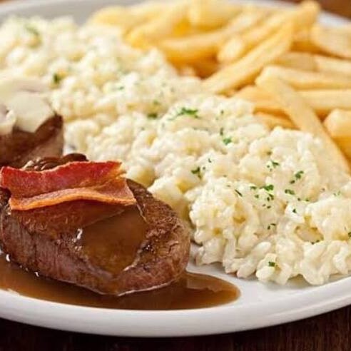 Bife De Chorizo Black Angus 1953 600 Grsacom:arroz Piamontese,farofa,molho Acampanha E Batata Rústica