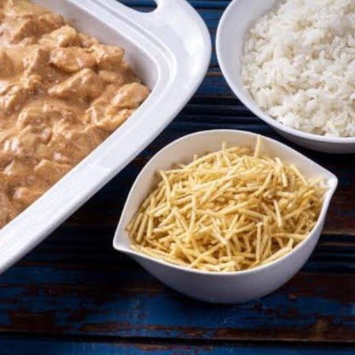 Acom : Arroz a piamontese , Farofa, molho a camapnha e batata rústica