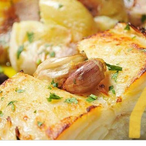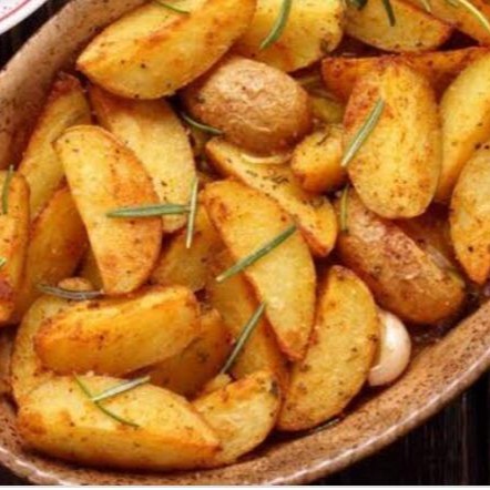 Aproximadamente 200 g de proteína acompanhado de batata rústica