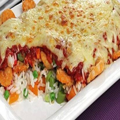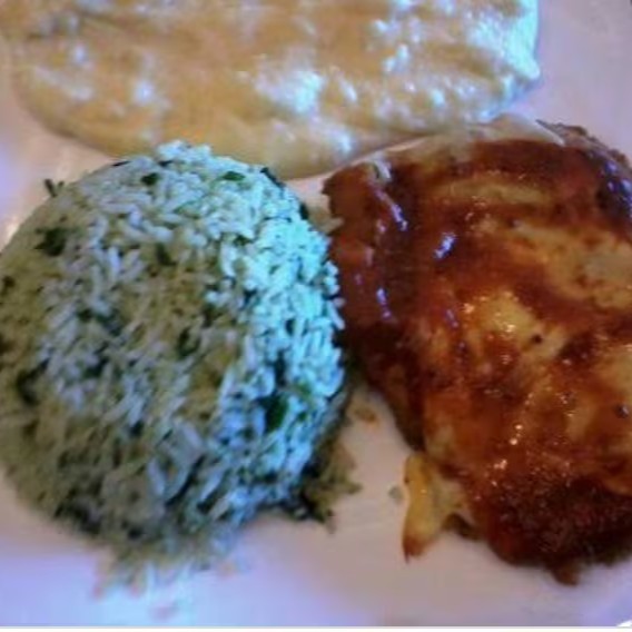 Filé De Frango Gaúcha+3 Linguiça De Pernil Arroz Verdinho F.ovos B. Canoa Molho