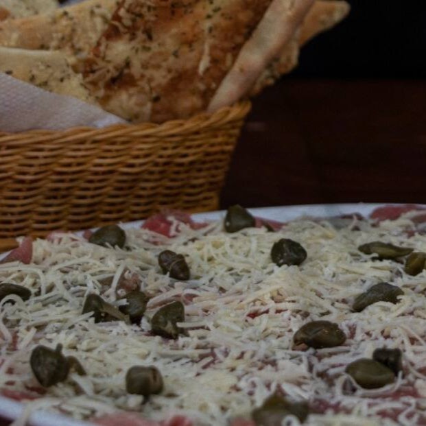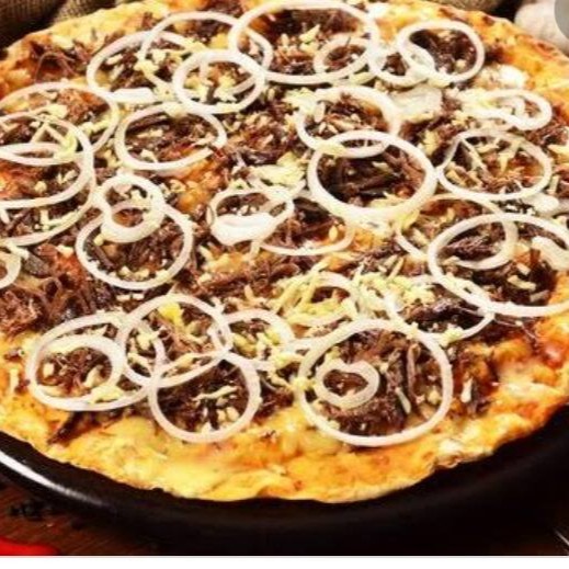Molho de tomate,Mussarela,Carne seca com cebola e Catupiry e orégano