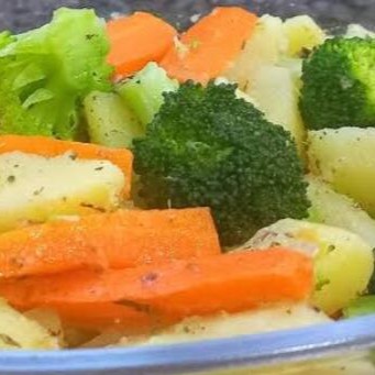 Acom:arroz á grega,batata assada e legumes cozidos no vapor