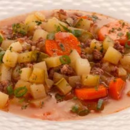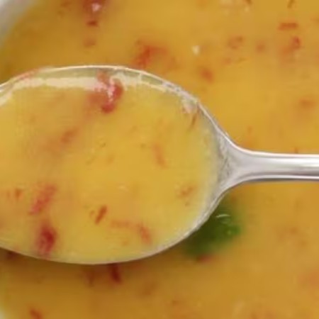 Caldo De Mandioquinha Cremosa Com Carne Seca Desfiada