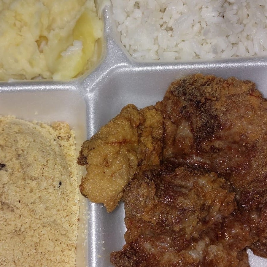 Quentinha Grande: Frango Á Milanesa Com Arroz Feijao Farofa E Fritas