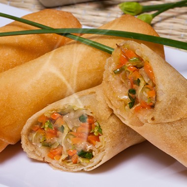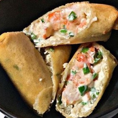 tradicional rolinho a primavera recheado com camarao, cream cheese e alho poro