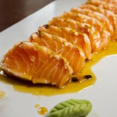 salmão cru com geleia de maracujá