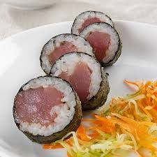 Atum, arroz japonês temperado, cream cheese e gergelim