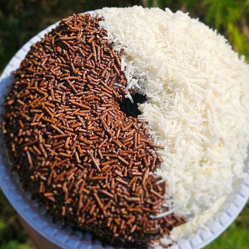 Massa caseira de Chocolate com Recheio e Cobertura de Brigadeiro Branco e Côco!