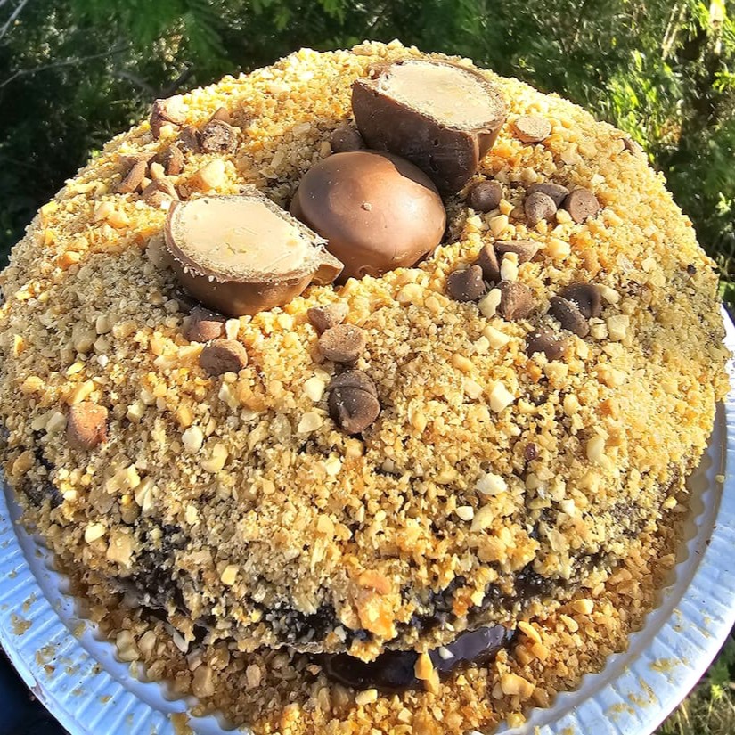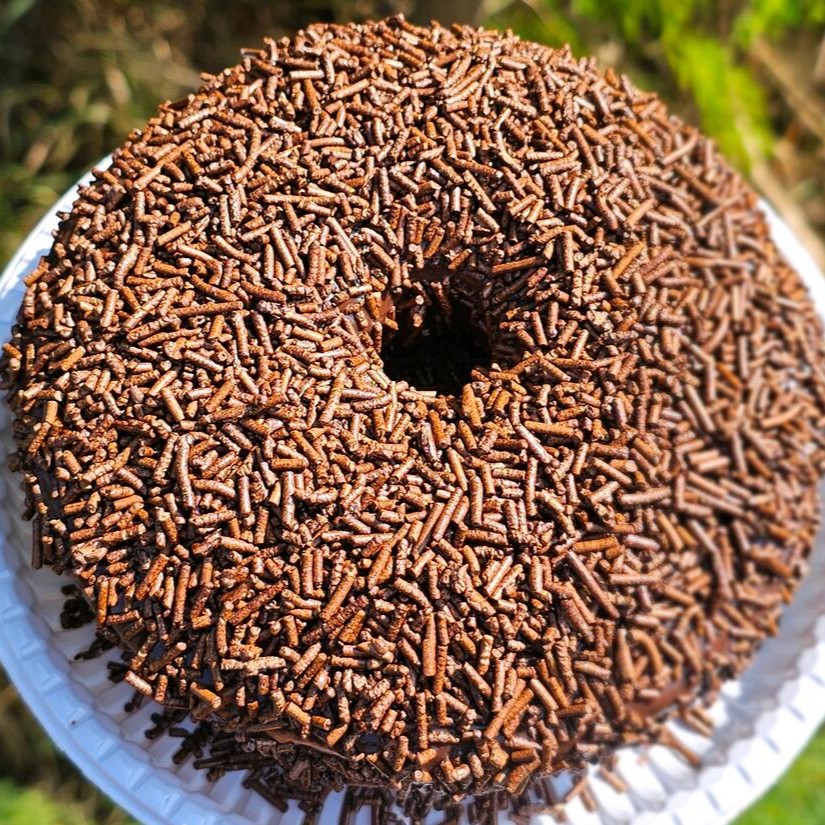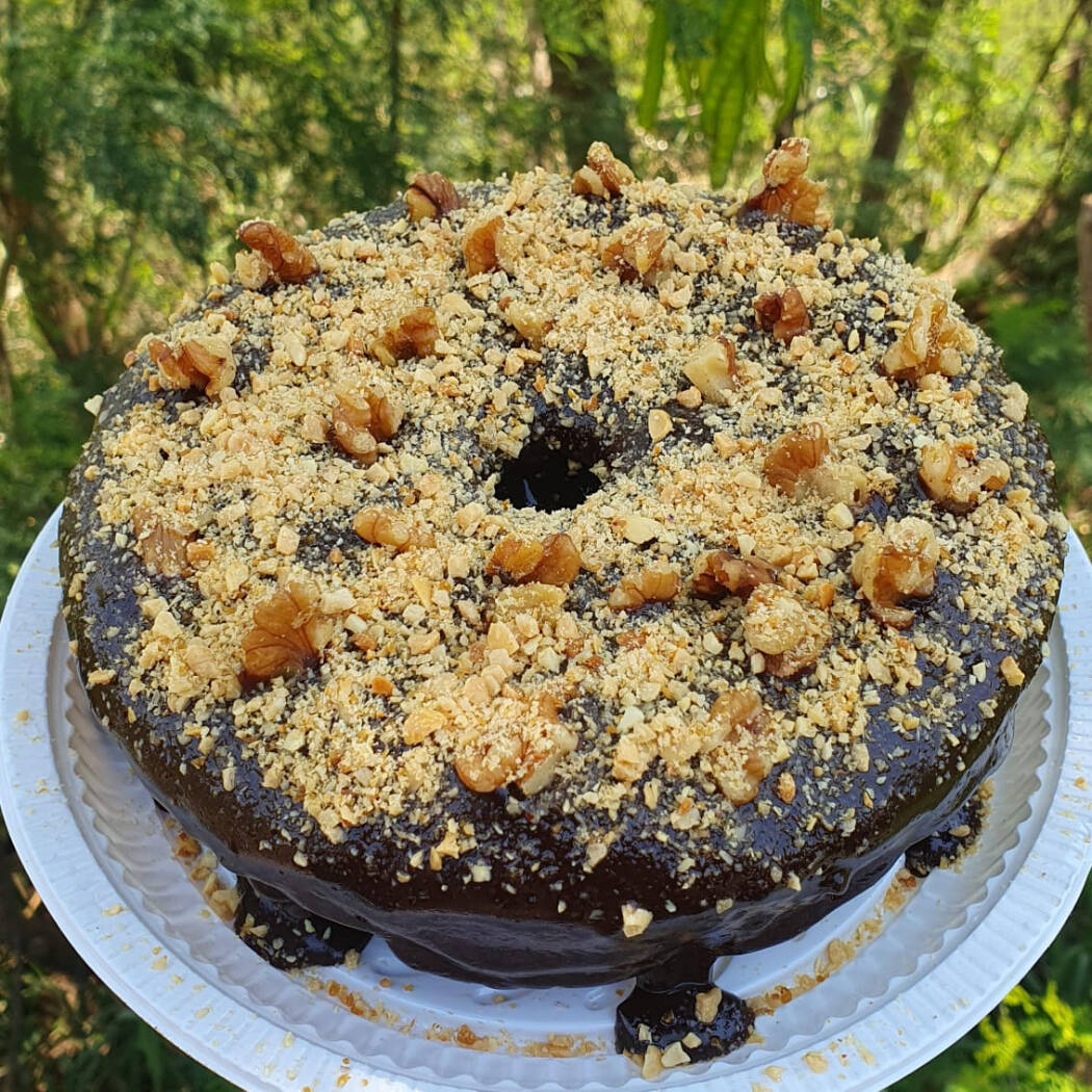 Bolo de massa de chocolate RECHEADO e com cobertura de Nozes