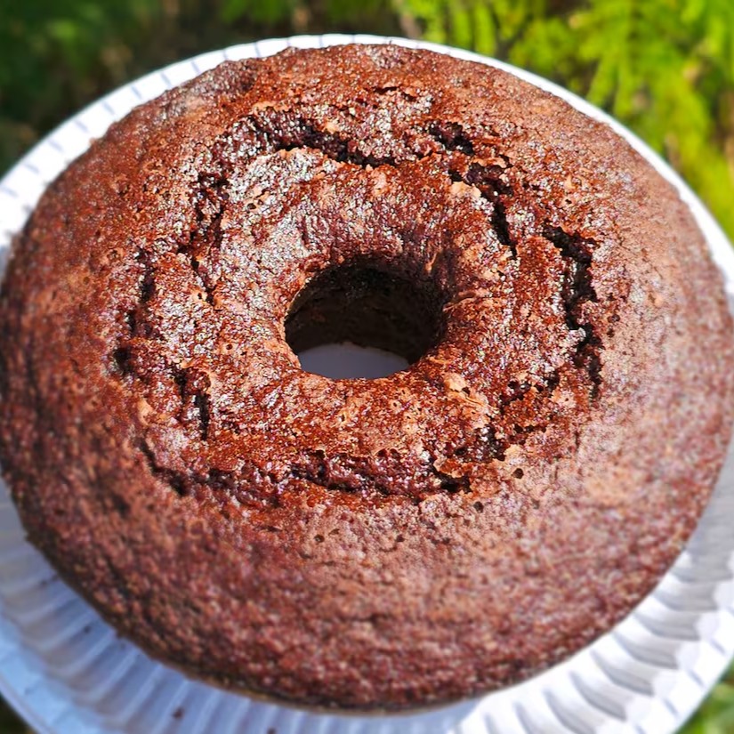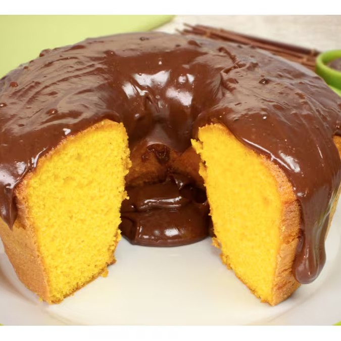 Bolo de Massa Caseira Sabor Cenoura com Calda de Chocolate