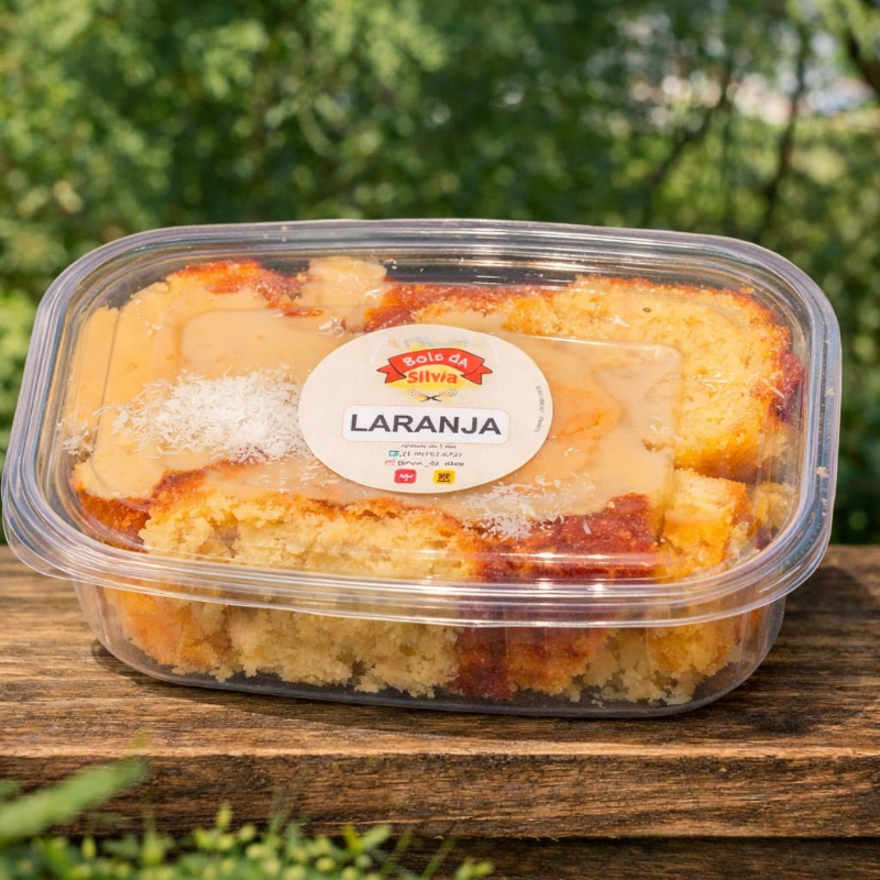 Bolo caseiro de Laranja, super macio e úmido, feito com suco natural da fruta e finalizado com cobertura e recheio cremosa.