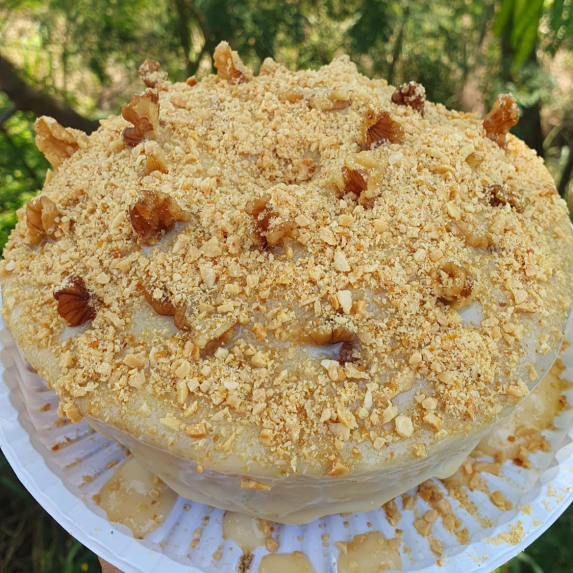 Bolo Massa Branca Recheado Com Cobertura De Nozes E Recheio De Nozes