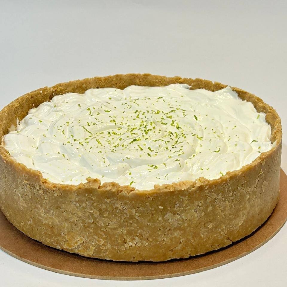 Torta feita com creme de limao e merengue envolvida em uma casquinha de biscoito de leite