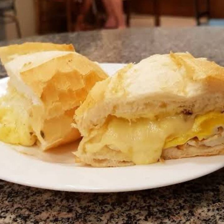 Pão francês tostado com ovo e queijo mussarela