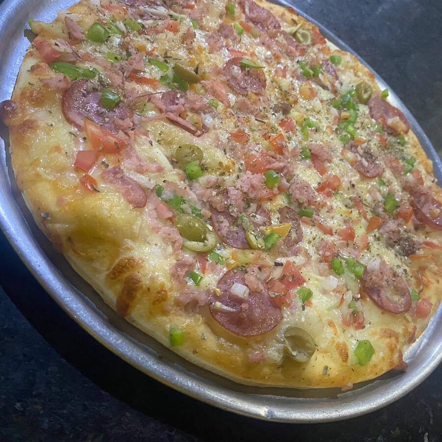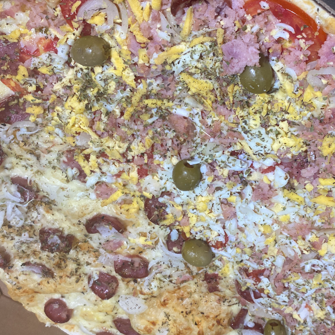 CALABRESA, TOMATE, CEBOLA, PIMENTAO,OVO RALADO, AZEITONA, PRESUNTO E OREGADO.