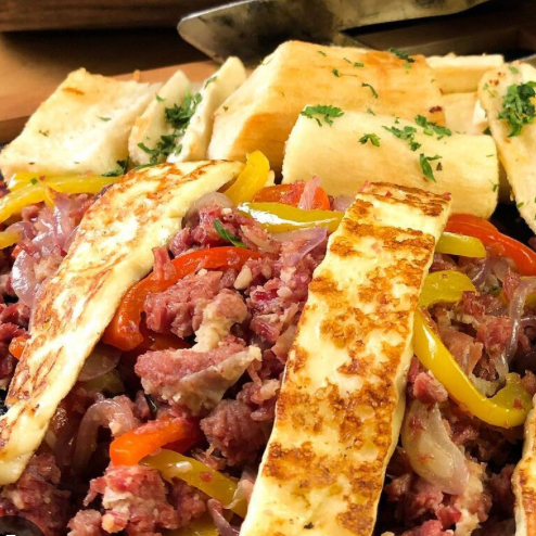 CARNE DE SOL, AIPIM E QUEIJO QUALY.