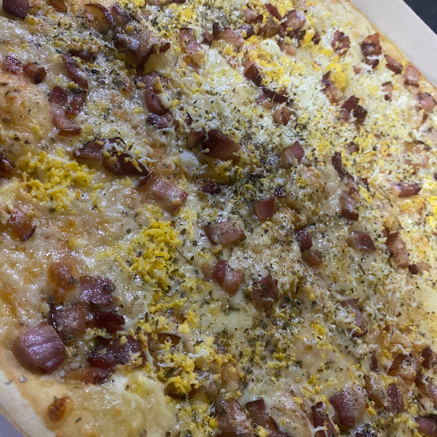 Suculenta porção com bacon, calabresa, cheddar , mussarela, queijo ralado e orégano . Molhos : maionese , ketchup, mostarda e Billy Jack