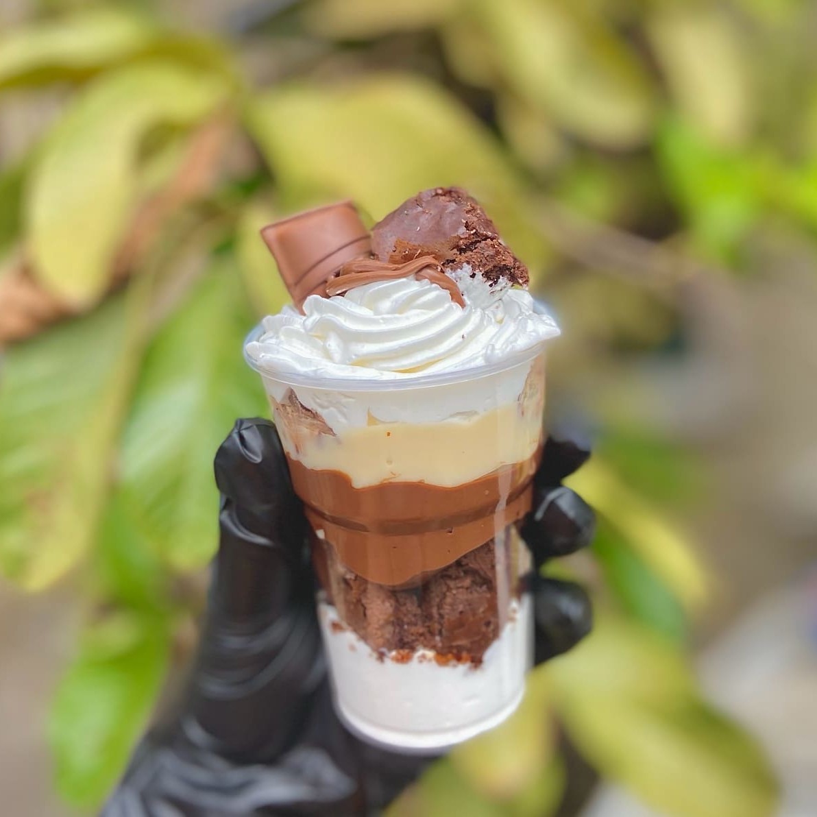 Camadas generosas de puro prazer! Começamos com um brigadeiro de Ninho super cremoso, seguido de chantininho leve e aerado, Nutella na medida certa e pedaços macios de brownie chocolatudo. E pra fechar com chave de ouro: um bombom Kinder Bueno crocante e irresistível no topo!