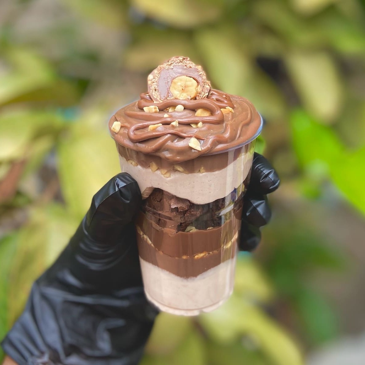 Um verdadeiro deleite para os amantes de chocolate e avelã! Nosso Copo Ferrero Rocher traz camadas generosas de brigadeiro de chocolate cremoso, envoltas em crocante amendoim triturado, com o toque irresistível da Nutella e pedaços macios de brownie. Para coroar essa experiência, um bombom Ferrero Rocher completo, trazendo toda a sofisticação e sabor que você merece.