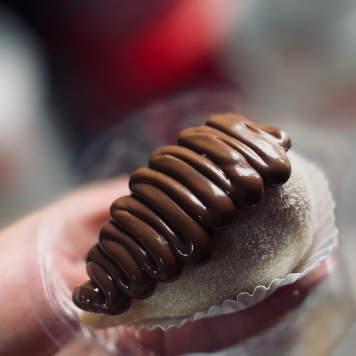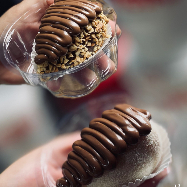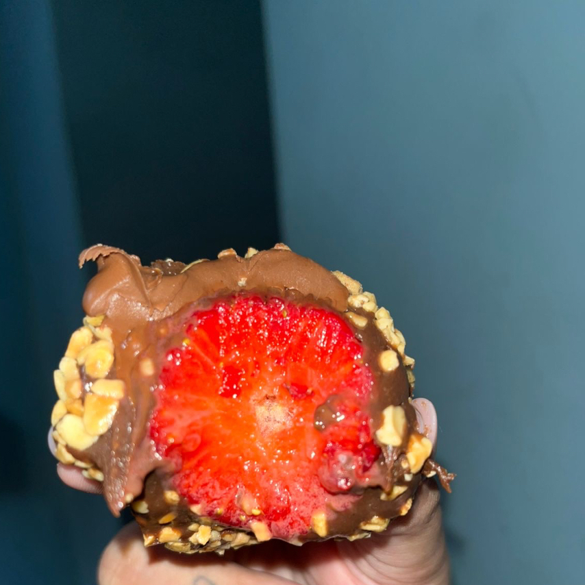 Uma massa levinha e macia com sabor de Ferrero, recheada com brigadeiro cremoso de chocolate que derrete na boca. Empanada no amendoim triturado, envolta no morango,Finalizada com Nutella. Essa coxinha doce é simplesmente viciante – perfeita para quem ama inovação com aquele toque de infância e muito sabor. 120g