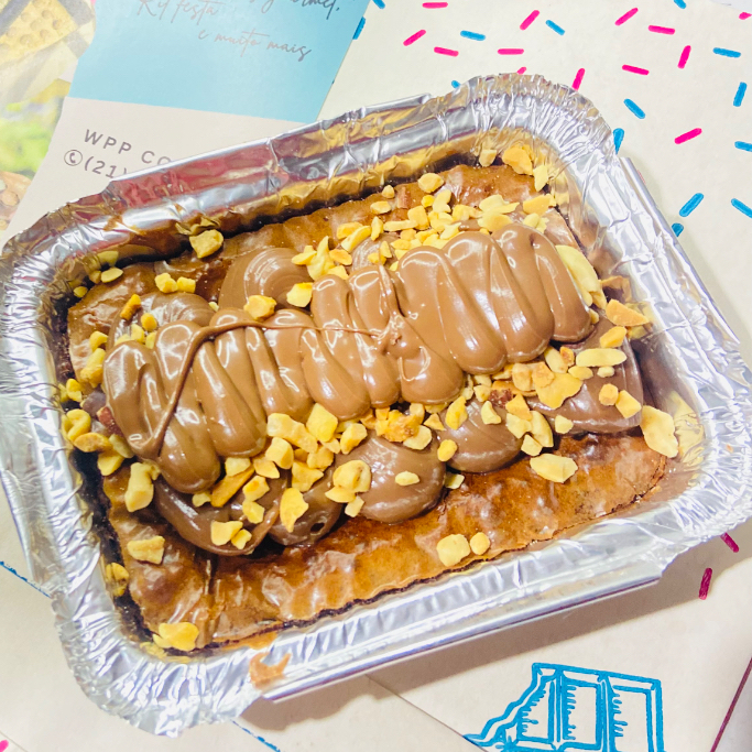 Brownie crocante por fora, molhadinho por dentro, recheado com nosso brigadeiro de chocolate 50% cacau, amendoim e Nutella