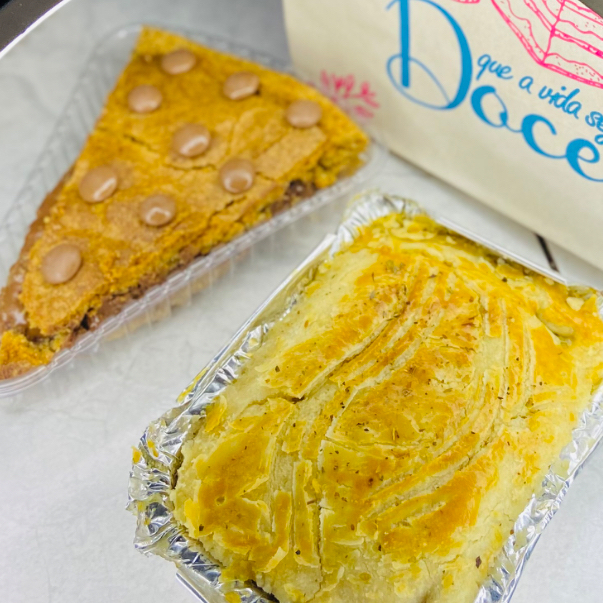 Nosso empadão cremoso com a massa fofinha que derrete na boca , acompanhado de uma torta de sua preferência, na promoção!
