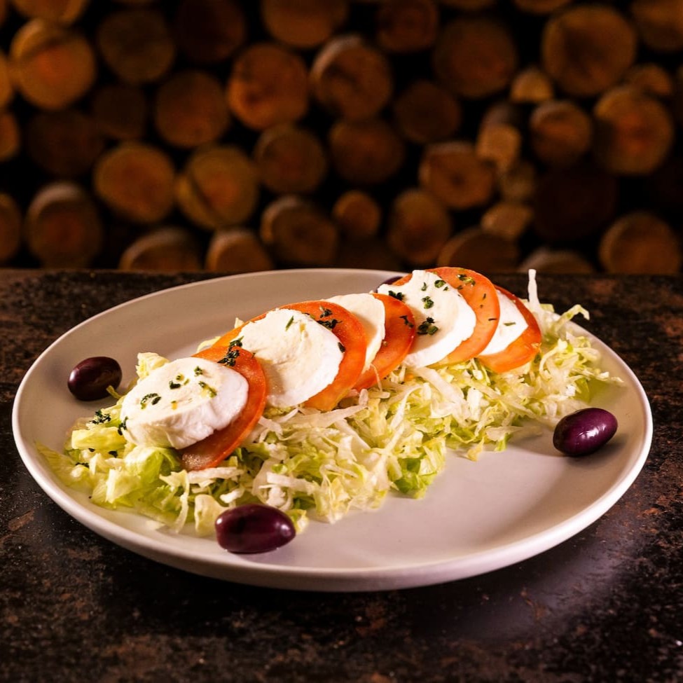 300g de picanha, uma linguiça de pernil, uma fatia de lombo suíno, meio galeto. Opção à campanha ou dois acompanhamentos