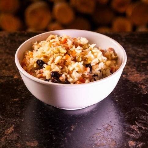 Tem direito a 2 acompanhamento de sua preferencia ou a guarnição a campanha que contém arroz branco,farofa de ovos,batata frita e molho a campanha.