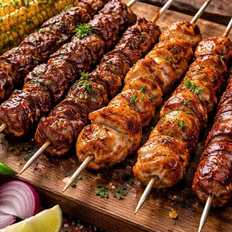 Churrasquinho Misto De Picanha Com Linguiça E Coração