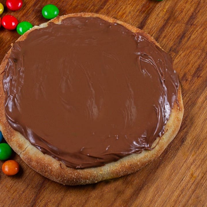 Mussarela, banana, chocolate branco e açúcar c/ canela