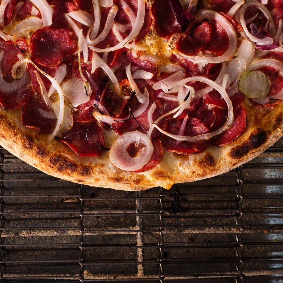 Frango, molho de tomate, tomate, cebola, salsinha, cheddar e bacon