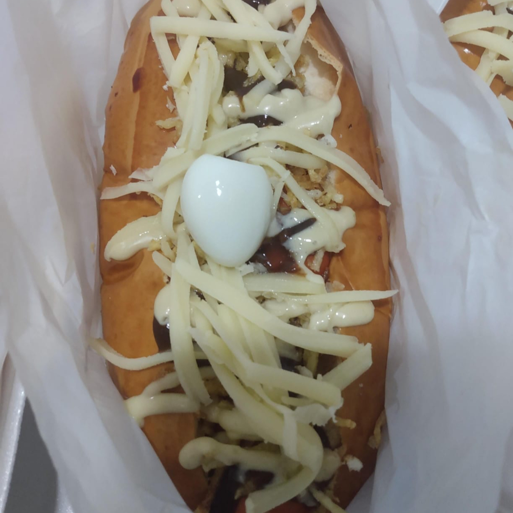 pão,2 salsicha,batata palha,mussarela,cheddar,catupiry,bacon,2 ovos,molhos verde e barbecue.