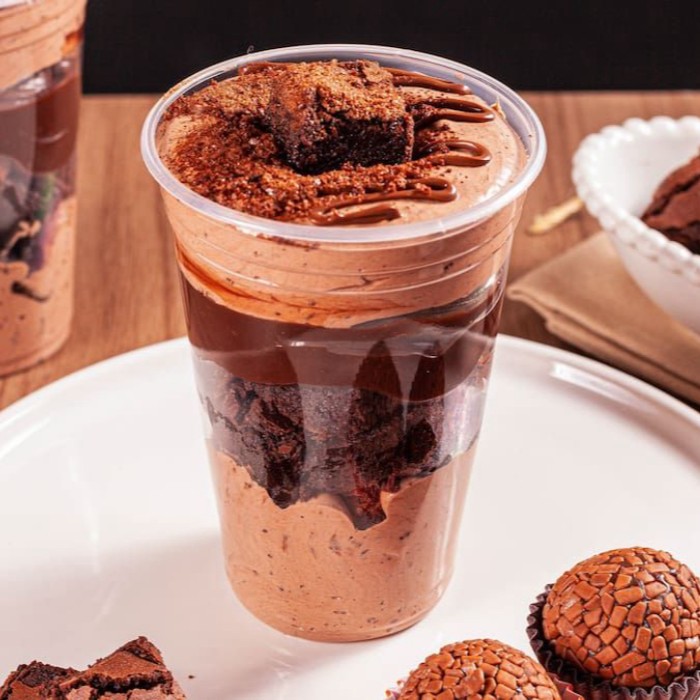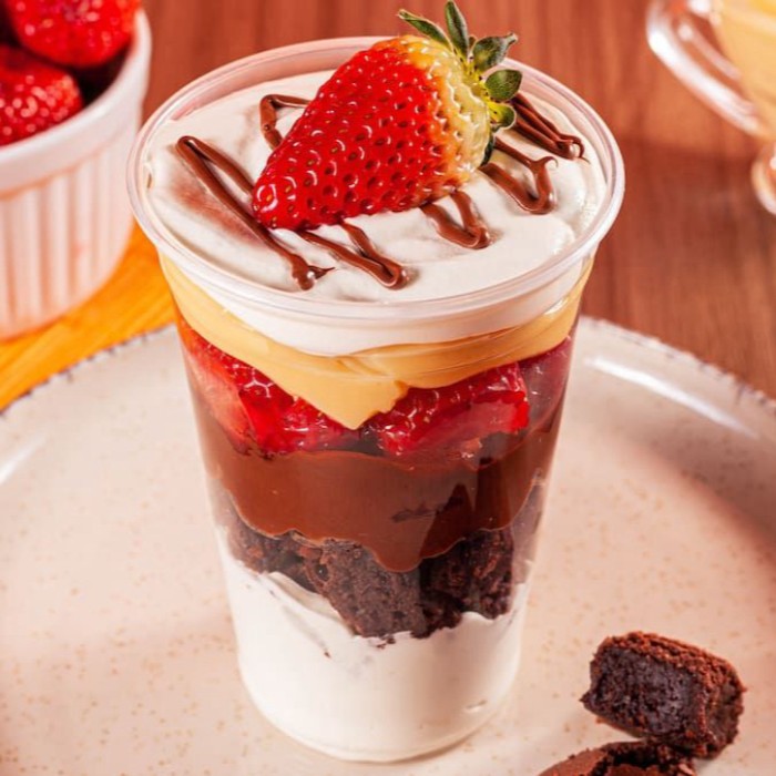 Uma explosão de sabor em cada colherada! Nosso Pote de Brownie é montado com três camadas generosas de recheio, intercaladas com duas camadas de nosso irresistível brownie macio e molhadinho. Perfeito para quem ama sobremesas intensas e cheias de doçura.