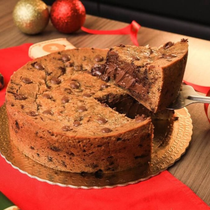 Deliciosa fatia de massa de Cookie com gotas de chocolate, crocante por fora e macia por dentro.