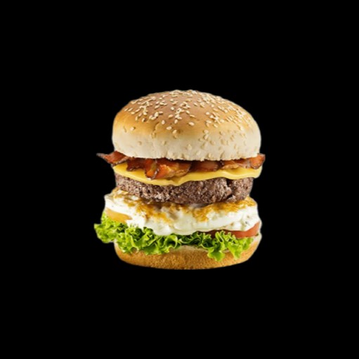 2 Carnes de picanha + 2 Ovos + Bacon + Polenguinho +Queijo prato + Cheddar cremoso + Alface + Tomate + Molho Billy Jack+ Picles + Molho Verde + Molho Barbecue