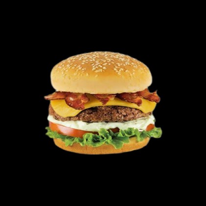 1 Carne de picanha + Ovo + Bacon + Queijo Prato + Cheddar Cremoso + Alface + Tomate + Picles + Molho Billy Jack + Molho Verde + Molho Barbecue+ Guaravita + Fritas