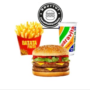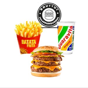 3 Burguer no pão de gergelim, podendo escolher ( Bruttus Bacon, Duplo Cheddar, Duplo Requeijão ou Big Bruttus). Porção de batata, acompanhada de cheddar, maionese da Casa, Billy jack, Requeijão, alho torrado, orégano, Bacon granulado