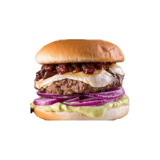 1 Carne de picanha + Ovo + Bacon + Queijo Prato + Cheddar + Alface + Tomate + Picles+ Molho verde+ billy jack + Barbecue
