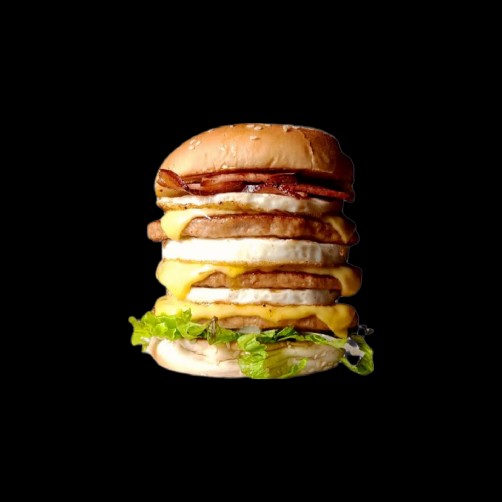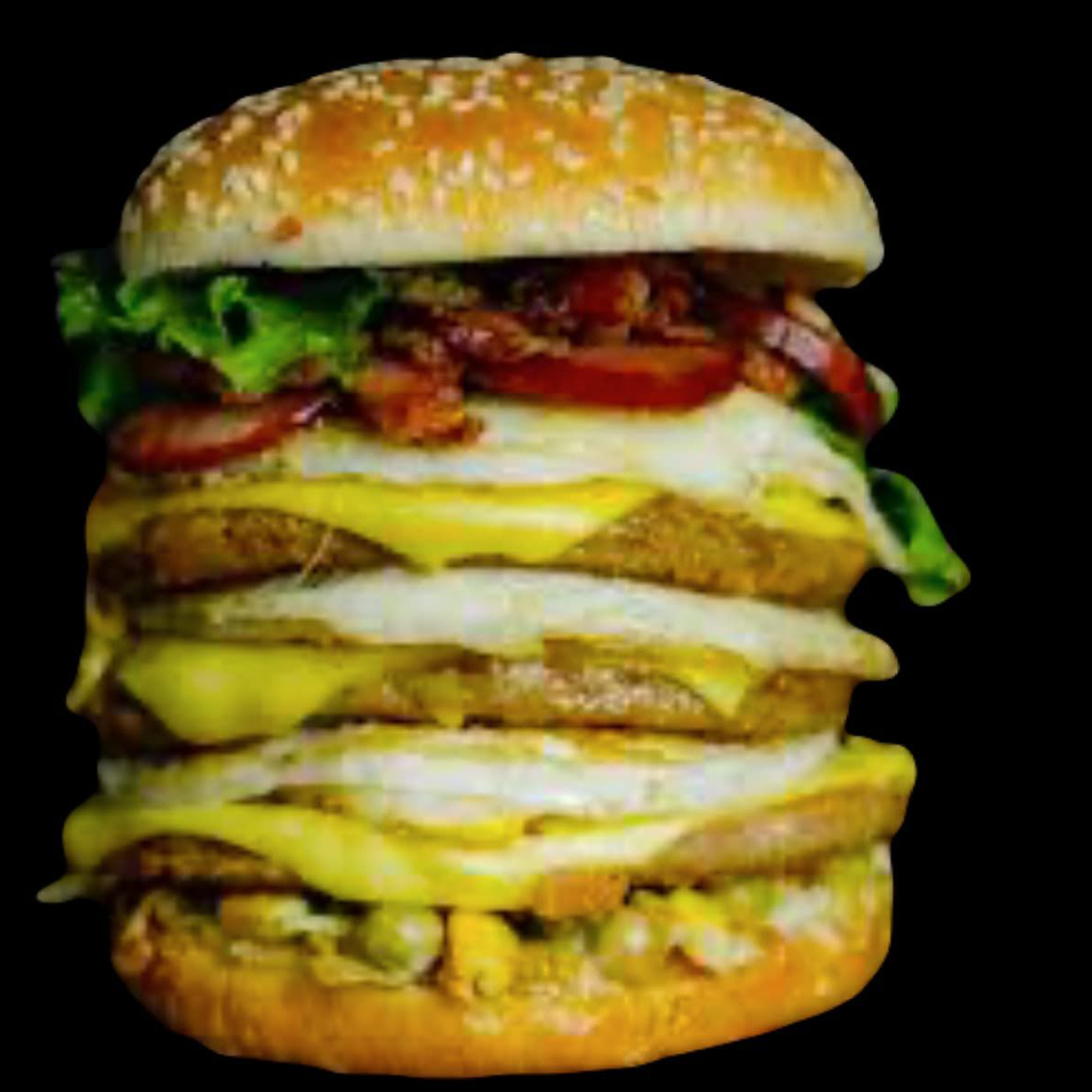 3 Carnes + 3 Ovos + Bacon + Calabresa + Queijo Prato + Cheddar Alface + Tomate + Alface + Picles+ Molho Billy Jack + Molho Verde + Molho Barbecue