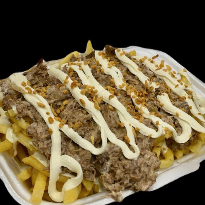 Batata 7mm, deliciosa costela desfiada e cremoso, creem chease, alho torrado e nossa deliciosa maionese da casa Serve de 2 a 3 pessoas