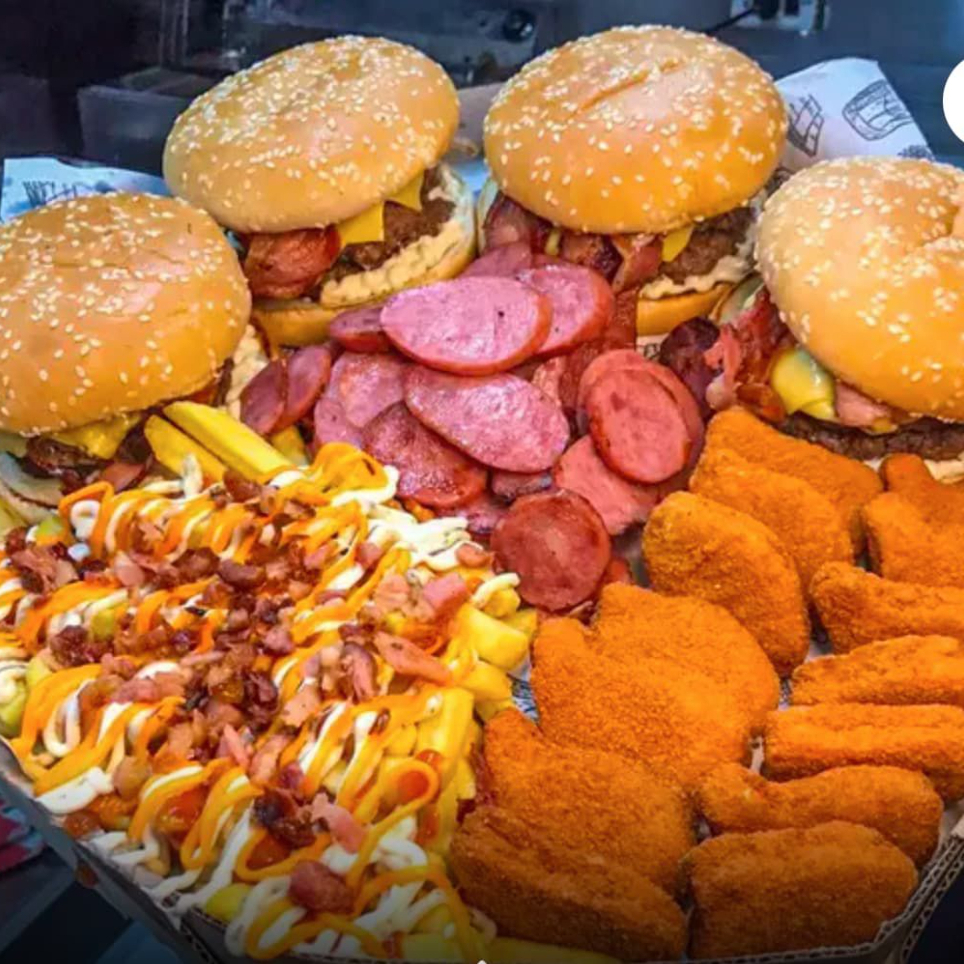 4 lanches podendo ser; ( bruttus tudo, bruttus bacon, EGG bruttus, duplo cheddar ou duplo requeijão ) porção de batata 7mm, acompanhada de cheddar, requeijão, maionese da casa, Billy Jack, bacon, 1/3 de porção de calabresa, 12 nugget. Tudo isso na caixa de 35cm