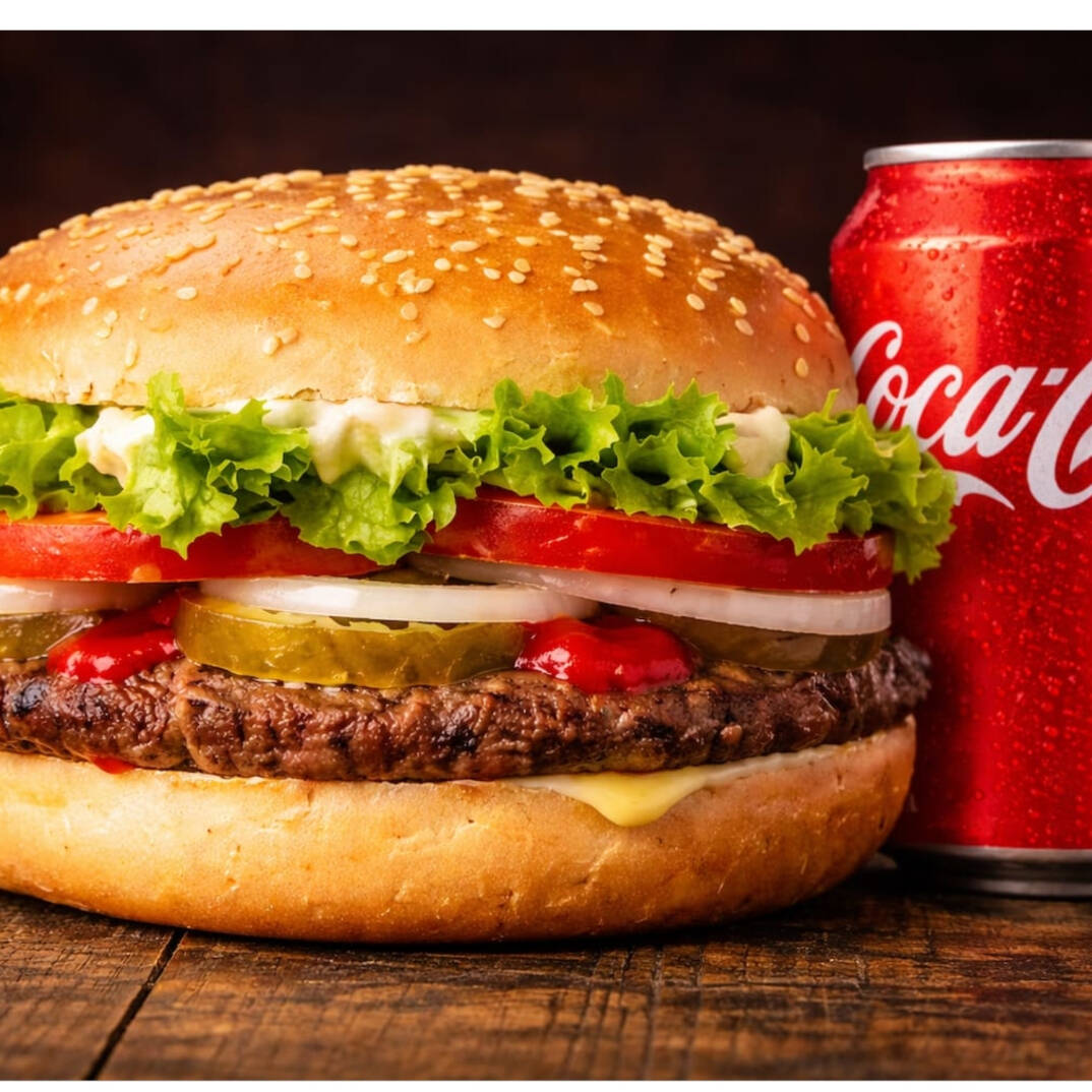 1 Carne + Queijo + Alface + Tomate +Cebola Caramelizada + Molho Billy Jack + Molho Verde + Molho Barbecue+ Fritas + Guaravita