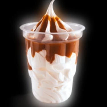 Delicioso sorvete cremoso de baunilha, regado com calda de caramelo, finalizado com farofa crocante de amendoim