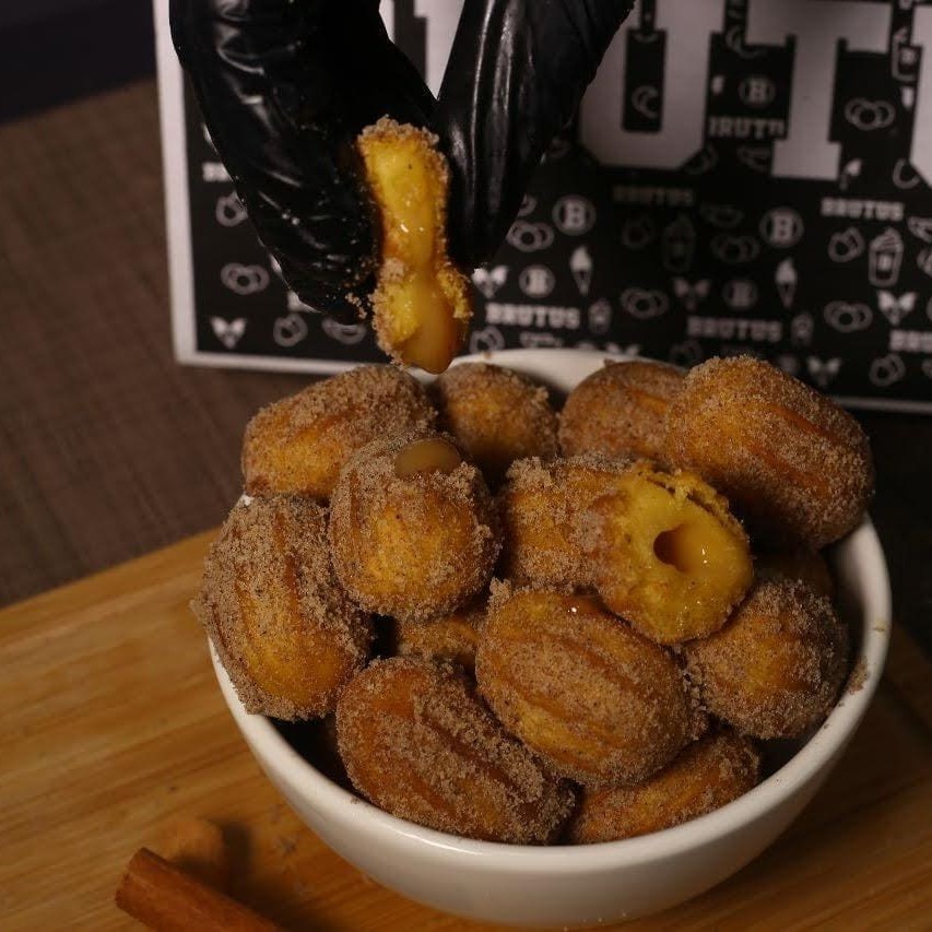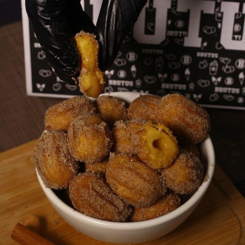 Porção de Mini Churros com açúcar e canela + Doce de Leite cremoso. Crocante e delicioso.