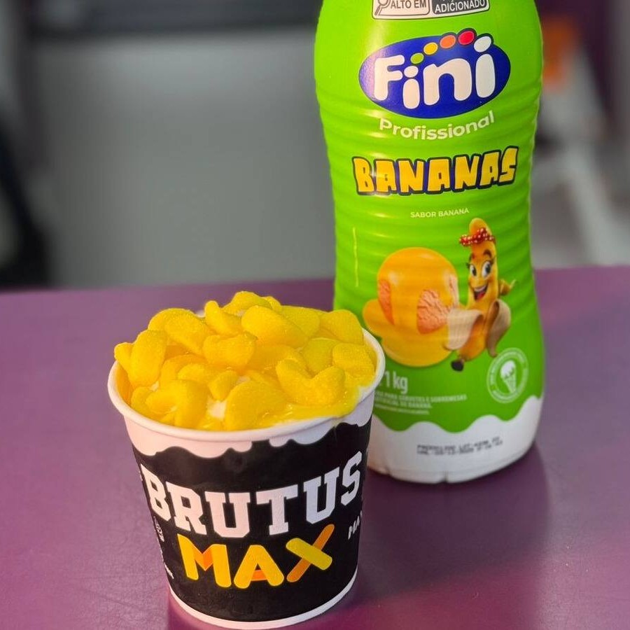 Uma mistura deliciosa de Sorvete, Cobertura de Fini banana e recheado de bala Fini banana. Uma explosão de sabor para refrescar o seu Dia!!!