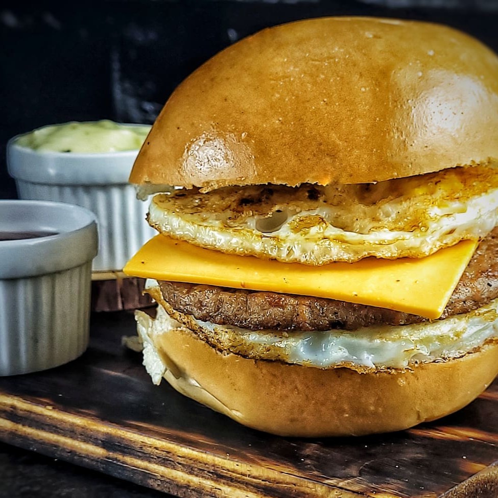 Embarque em uma jornada gastronômica com o nosso X-Duplo, da categoria 'Sublimes Sanduíches'. Este lanche majestoso apresenta um pão bola fresquinho, abrigando duas suculentas camadas de carne, complementadas por dois ovos perfeitamente cozidos. O sabor fica ainda mais intenso com a dupla camada de queijo cheddar derretido e presunto de primeira. Acrescentamos a calabresa crocante e o bacon defumado para uma combinação perfeita. O ketchup e a nossa maionese caseira adicionam um toque especial, enquanto o milho e a ervilha trazem um frescor ao prato. Finalizamos com uma generosa porção de batata palha crocante e uma pitada de queijo ralado. É uma experiência culinária inesquecível!