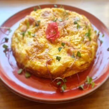 Desfrute de nossa deliciosa Omelete de Queijo Meia Cura da Canastra, um prato da categoria 'Ovos e Omeletes'. Esta omelete é cuidadosamente preparada com três ovos frescos, combinados com o sabor único do queijo meia cura da Canastra, conhecido por sua qualidade superior e sabor inconfundível. A finalização do prato é delicada e elegante, com brotinhos frescos e flores comestíveis da Panc, trazendo um toque de cor e frescor. Uma experiência gastronômica de dar água na boca, perfeita para qualquer refeição do Dia.