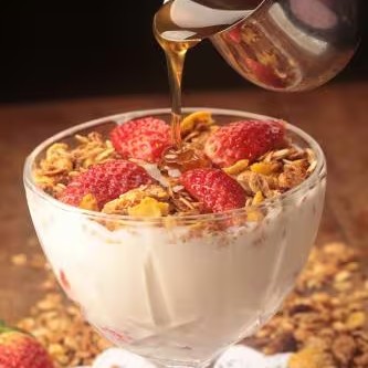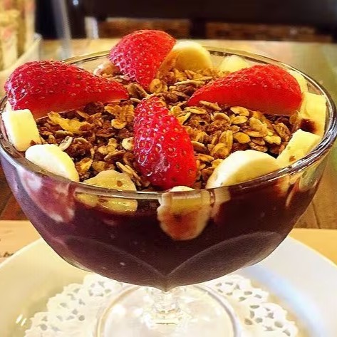 O 'Parfait' é um verdadeiro deleite celestial refrescante para suas manhãs. Este prato, da categoria 'Cafés da Manhã - Combos', é uma deliciosa combinação de iogurte natural, morangos suculentos e granola crocante, delicadamente adoçada com mel. Ele promete não apenas tornar as suas manhãs mais saborosas, mas também infundir a sua rotina diária com uma explosão de energia. Experimente e transforme a sua primeira refeição do Dia em uma experiência repleta de sabor e saúde.